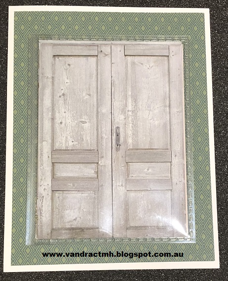I really love the double doors PML 3x4 card and that was to be my front for the card. The Green diamond paper is from the Documented paper pack and then I stuck the 3x4 Flip Flap onto the 4 x 5.25 inch card front on the White Cards & Envelopes Value Pack card. I cut a 3x4 piece of the purple spot paper from the Documented paper to put on the back of the door inside the flip flap. Then I lined up very carefully the stamped sentiment PML card (pictured above) and stuck it over the top of the plastic flap adhesive and the backing paper.
